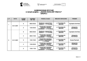 Jesteś tutaj: Home1 / O projekcie2 / Harmonogramy3 / HARMONOGRAM SPOTKAŃ Z PRACOWNIKIEM SOCJALNYM, DORADCĄ ZAWODOWYM I PSYCHOLOGIEM &...